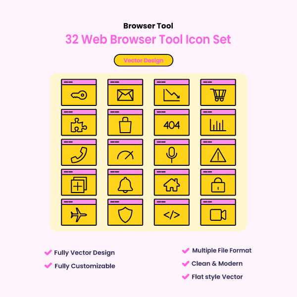32 Web Browser Tool Icon Set – Minimal Line Icons for UI, Apps & Websites