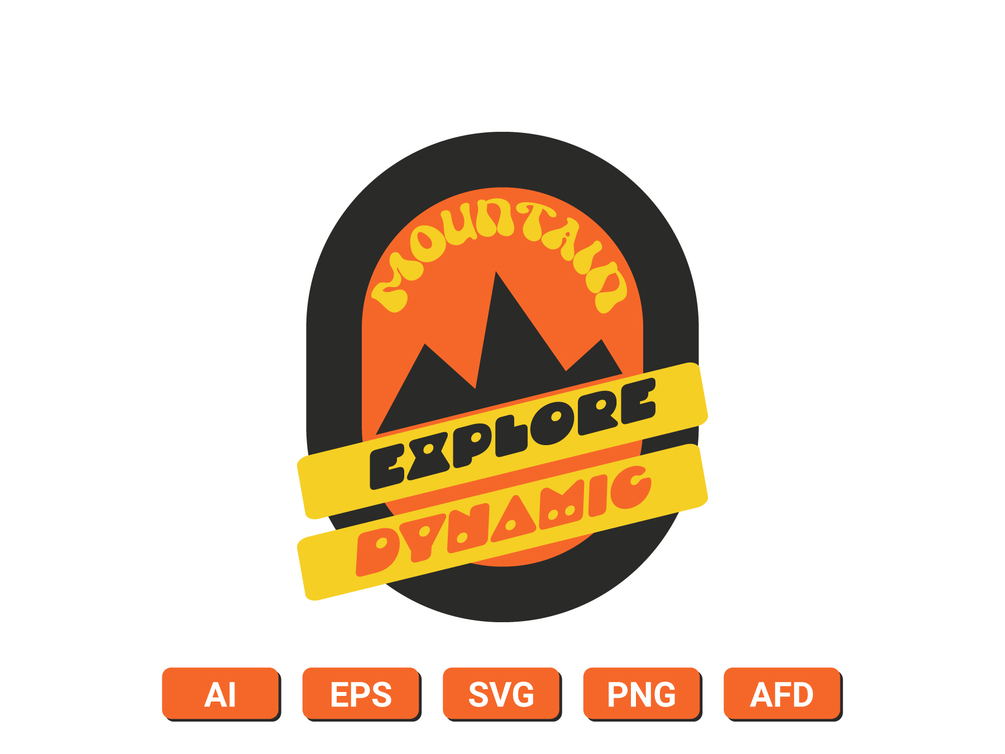 The Mountain Explore Dynamic Badge Logo Illustration is a bold, modern adventure-themed design featuring a stylized mountain icon with layered badge elements and vibrant colors.