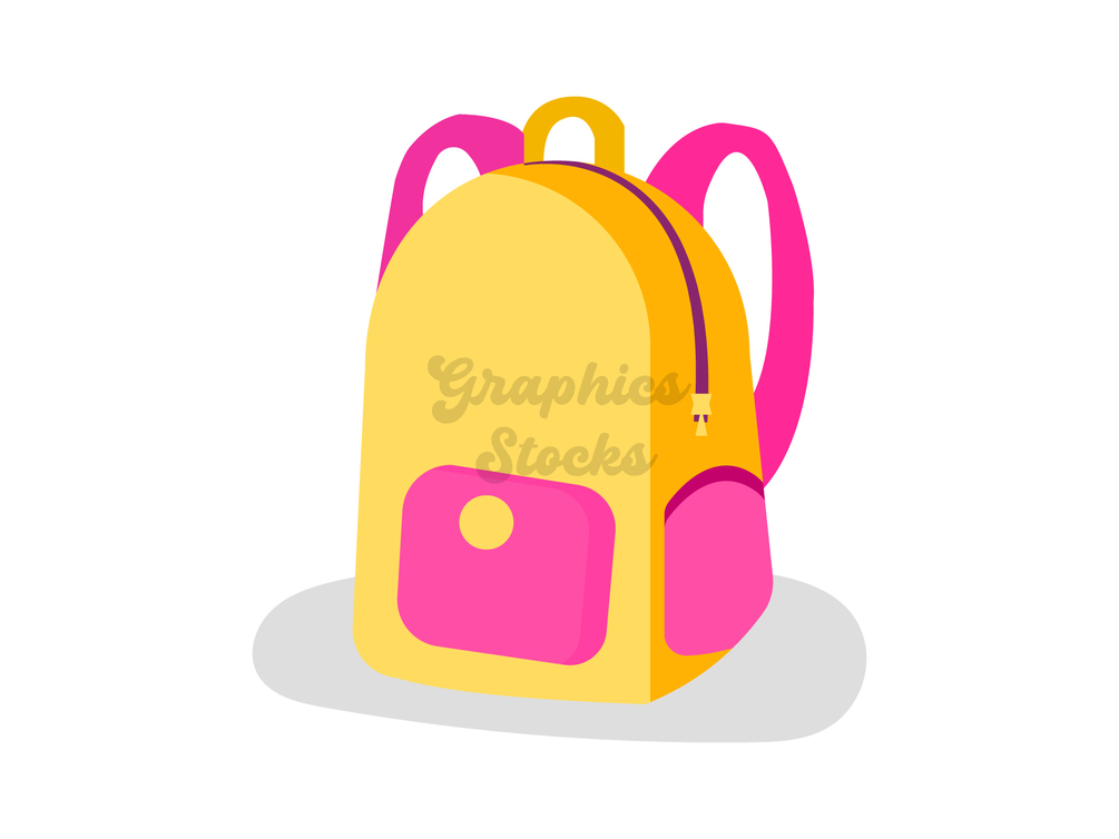 Enhance your educational or design projects with this colourful school backpack illustration in a modern flat style. This graphic features a playful yellow and pink backpack with smooth curves and a clean vector finish, making it ideal for school-themed designs, back-to-school campaigns, classroom materials, children's websites, or mobile apps.
