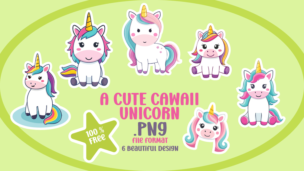 Cute Kawaii Free Unicorn Design Set - 6 Adorable PNGs