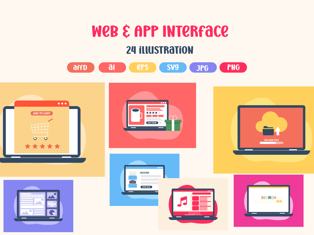 We aim to provide high-quality digital tools for your design needs. Please leave a review to share how these Web & App Interface Illustrations helped you showcase your creativity!