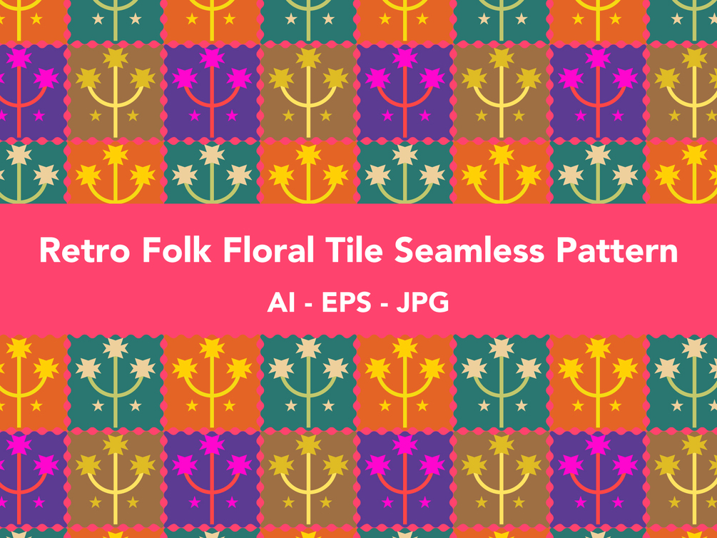 Add a bold vintage touch to your designs with this Retro Folk Floral Tile Seamless Pattern.