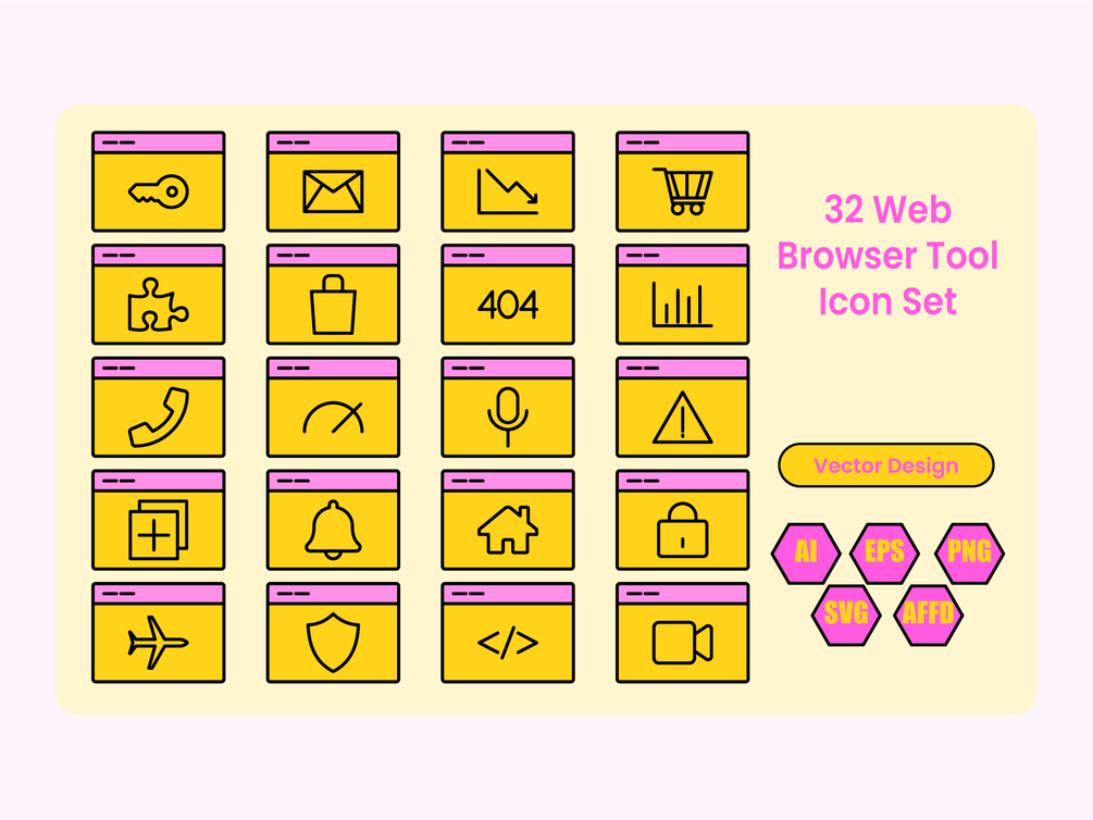 Each icon is fully scalable and editable, available in popular formats such as SVG, PNG, AI, AFFD, and EPS, making them easy to customize to your brand’s style. Whether you’re designing a web browser UI, developer tools, or digital products, this icon pack provides all the essential symbols you need.