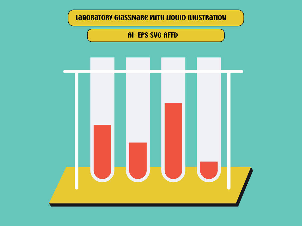 Shop with FreepikShop With Adobe StockThe design features four test tubes in a rack, each filled with varying levels of bold red liquid